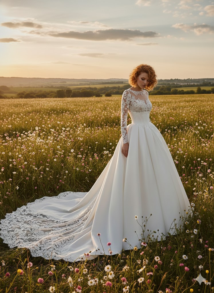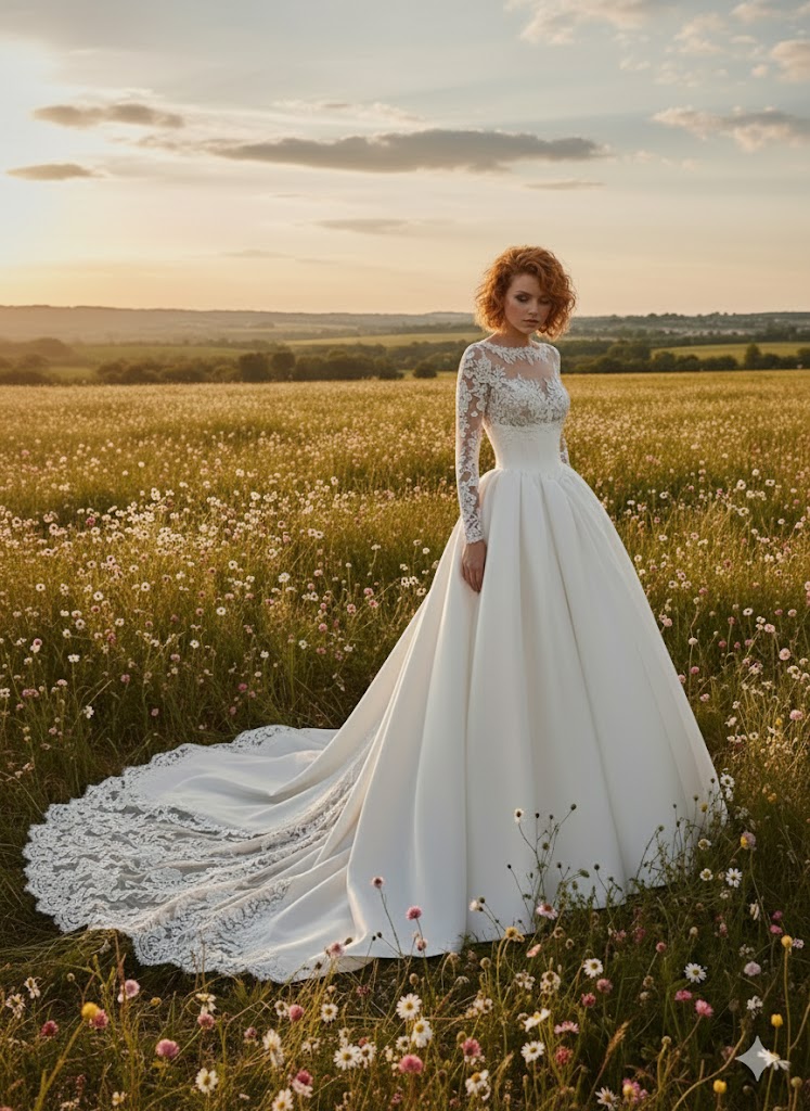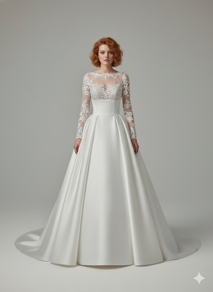 French Satin Empire Wedding Dress