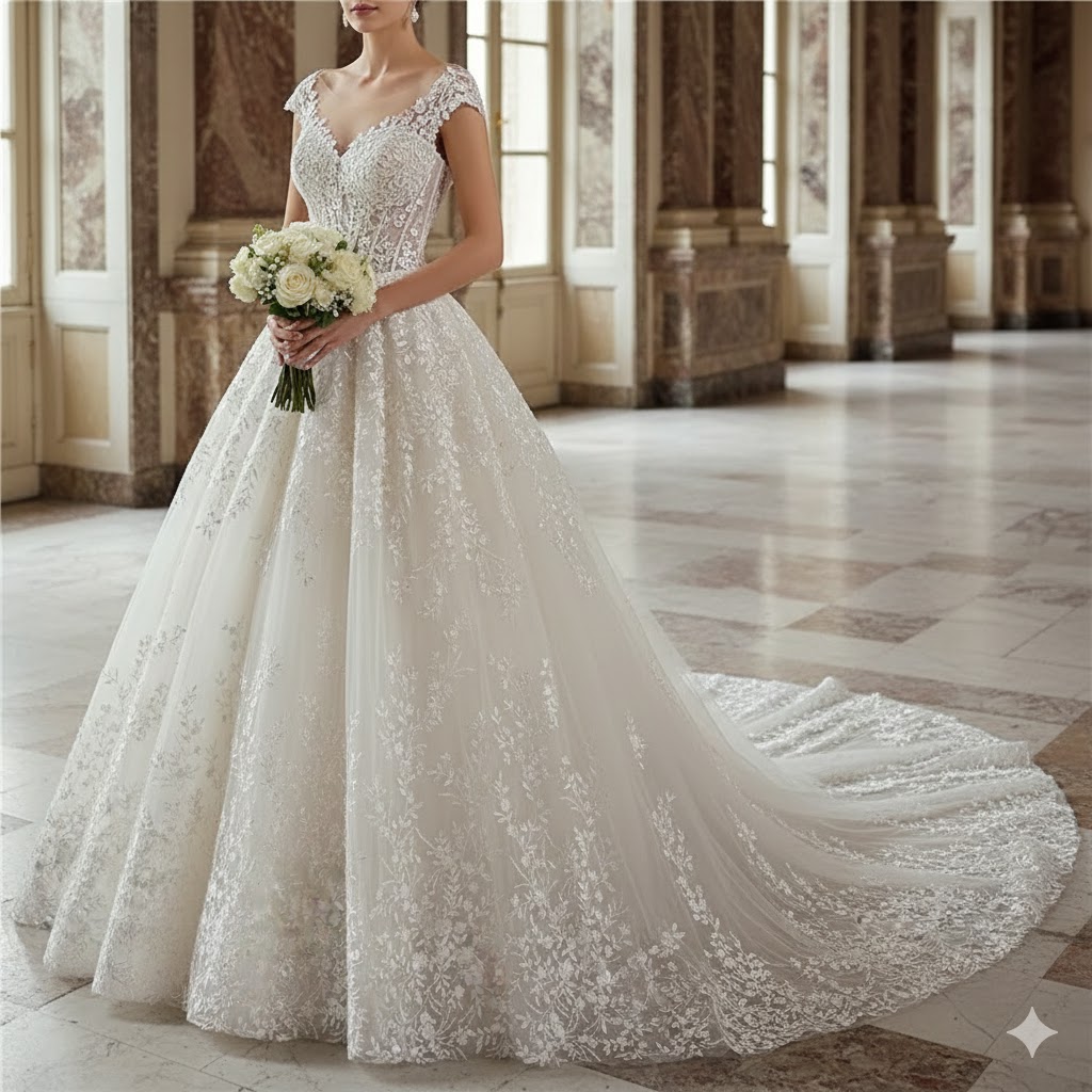 Full Beaded Lace Princess Wedding Gown Full Beaded Lace Princess Wedding Gown